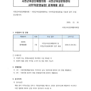 서천군여성단체협의회 및 서천군여성문화센터 사무직(운영실…