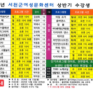 서천군여성문화센터는 2026년 프로그램 강사 최종합격자를 다음과 같이 발표합니다. …